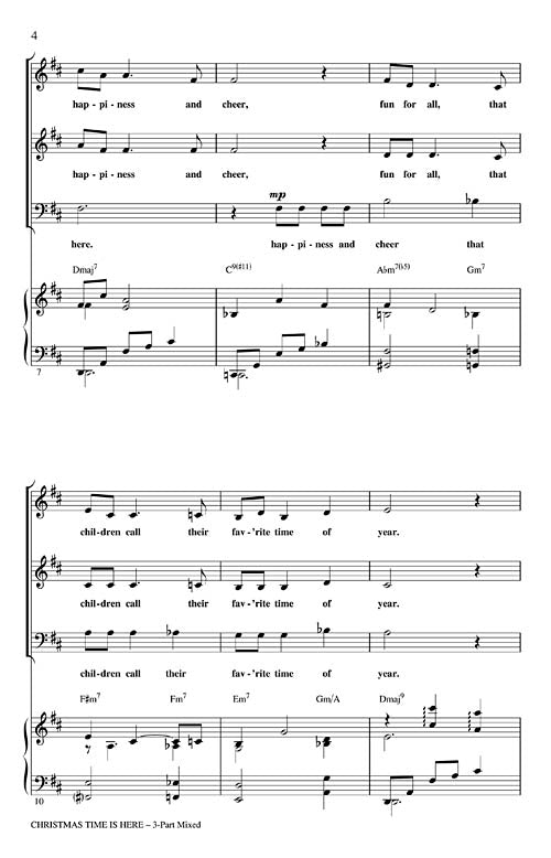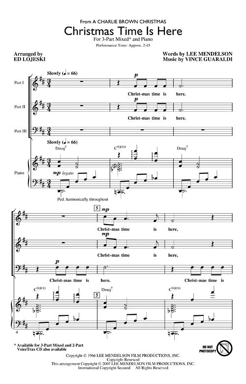 The tender ballad from A Charlie Brown Christmas is a perfect jazz-flavored choice for younger choirs. Well-crafted vocal lines and a tasty piano accompaniment assure success. Discovery Level 2.Available separately: : 2-Part, 3-Part Mixed and VoiceTrax CD. Approx. Performance Time: 2:45