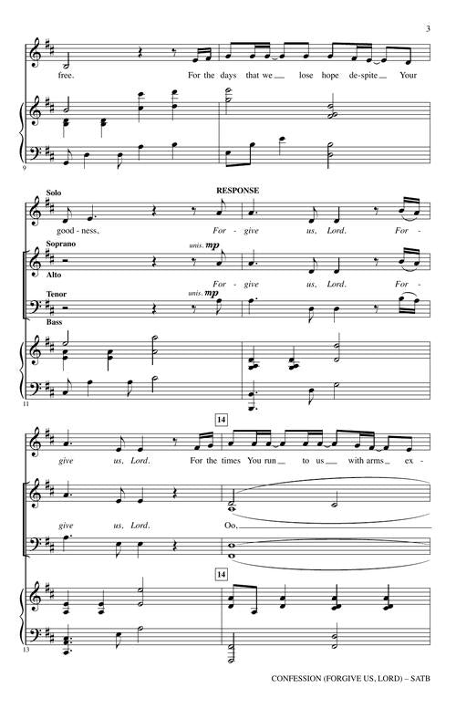 Liturgical sensibility meets contemporary styling in this prayer for forgiveness. Set in a classic call-and-response format, the congregation is invited to respond, Forgive us, Lord in a musical version of the cantor/respondent prayers of liturgical traditions. The music also follows a conversational style, bringing an interactive and authentic spirit. More than a performance piece, this significant moment of worship art is as beautiful as it is useful. Singular! Score and Parts (ac gtr, vn 1-2, vc, syn, perc) available as a digital download.