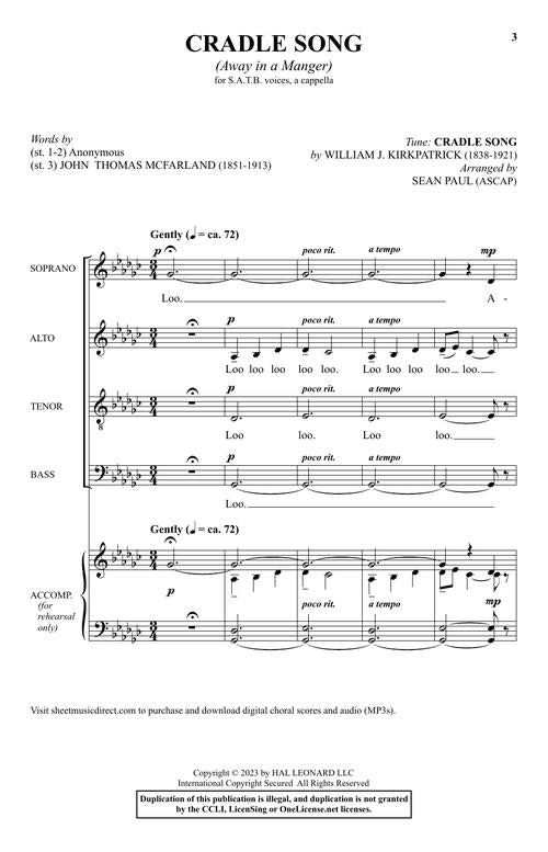 This quintessential Christmas lullaby is arranged for the unaccompanied choir and incorporates vocal orchestration effects, providing singers with innovative opportunities for fresh sounds and luxurious harmonies.