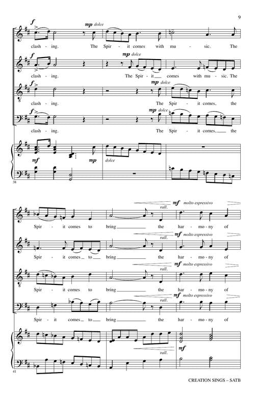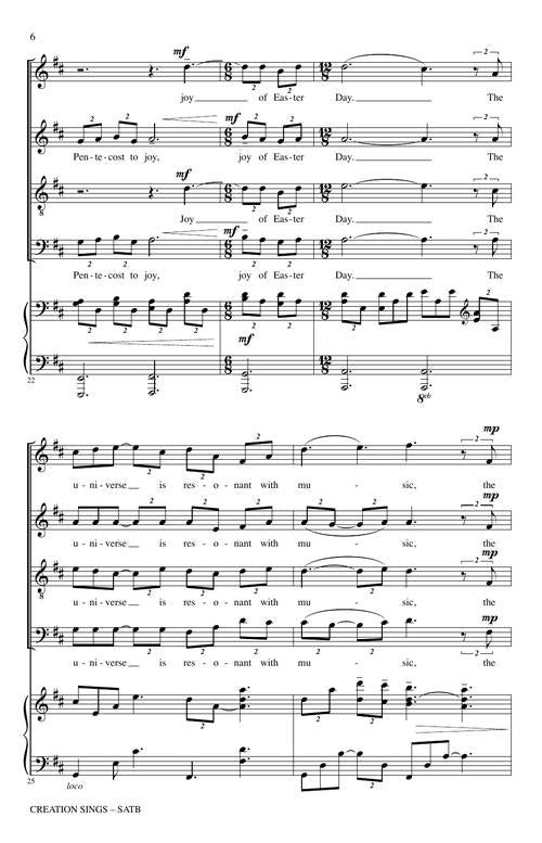 With the inspired words, Creation sings and we are in the music, this anthem sweeps us into noble truths and wonderfully inspiring music. An impressionistic accompaniment provides color and energy, while the choral themes and textures are carefully designed for clarity of text. With glorious strains, the miracle of creation is celebrated, surrendering to a finale of soaring alleluias and impressive piano octaves. ÿ