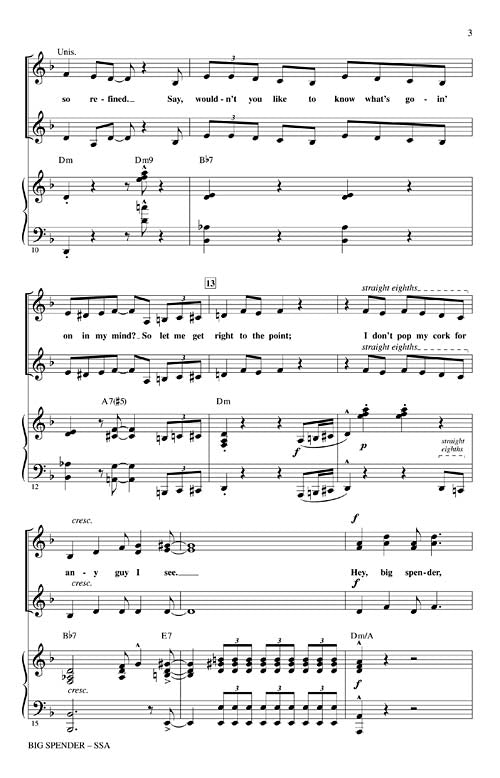 You'll be hooked at the sultry opening notes of this Broadway classic by Cy Coleman and Dorothy Fields. A super feature for SSA ensembles! Performance Time: Approx. 4:30.Available separately: SSA and ShowTrax CD.