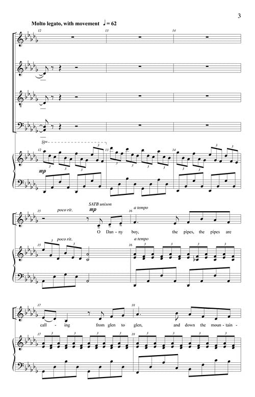 The response to Kevin Memley's setting of Danny Boy for TTBB voices in 2011 was so strong, we now offer voicings for SATB and SSA. This setting begins and ends with the voices emulating the bagpipe sounds of Scotland. Everything about this song pulls at the heartstrings and Memley's skillful touch pulls it even deeper. For high school and up.