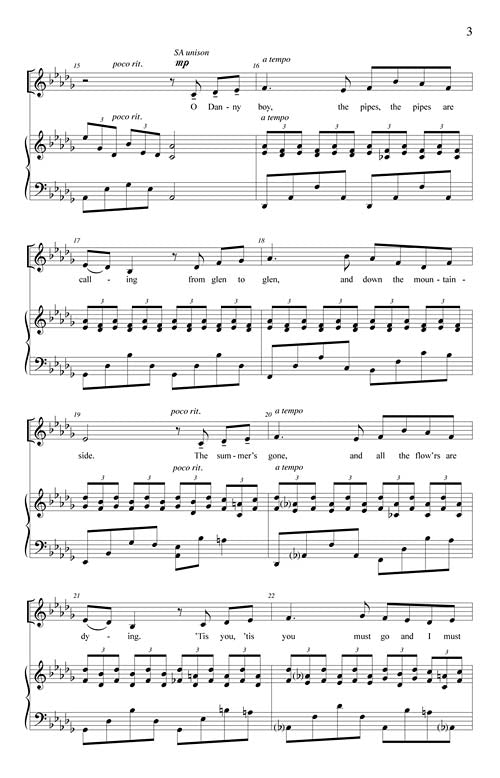 The response to Kevin Memley's setting of Danny Boy for TTBB voices in 2011 was so strong, we now offer voicings for SATB and SSAA. This setting begins and ends with the voices emulating the bagpipe sounds of Scotland. Everything about this song pulls at the heartstrings and Memley's skillful touch pulls it even deeper. For high school and up.