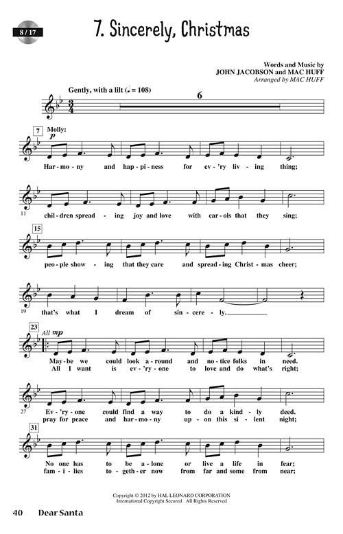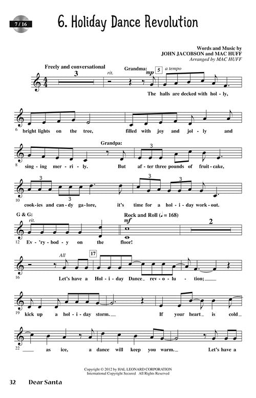 Email? Text? Post? Tweet? Skype? Christmas is almost here, and the entire family is frantic about getting their lists to Santa in time. Exhausted super Mom is ready for an island vacation, choked-up Dad doesn't need any more ridiculous ties, big brother Axel is on the move and needs some wheels, little brother Joey wants a puppy, and Grandma and Grandpa want to try out their new matching sweat suits with one of those fancy dance revolution machines. But, see how little sister Molly's handwritten letter reminds everyone of the true meaning of the season - sincerely! Join the holiday hi-tech fun with clever songs, hilarious antics and a full evening of entertainment that will leave your audience in stitches! This musical tweet is designed for performers in upper elementary and middle school, and features 7 original songs and a script with 18 main speaking parts. The Teacher Edition is filled with quality performance material including piano/vocal song arrangements with choreography, script, helpful production guide and teaching objectives linked to the National Standards for each song. For added value, the ready-to-use student books include songs and script, and will enhance the musical experience for your young aspiring actors/singers! Available separately: Teacher, Singer 5-Pak, Preview CD, Preview Pak, Performance/Accompaniment CD, and Performance Kit/PACD. Duration: ca. 40 minutes. Suggested for grades 4-8.