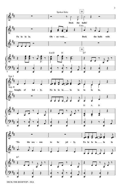 Don we now our Glee apparel and deck the halls with a fa la la and a ho-ho-ho! This hip and dance-y mash-up of Deck the Halls and Up on the Roof Top from The Glee Cast's Christmas Album will be the hit of your holiday show and fun for choirs of all levels! Available separately: SATB, SAB, SSA, 2-Part, ShowTrax CD. Rhythm parts (syn, gtr, b, dm) available as a digital download. Duration: ca. 2:35.
