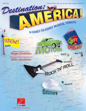 The music of America tells its story... from Nashville to Seattle, New York to L.A., and everywhere in between, the heart of America is beating in its music! Whether you're a fan of Rock and Roll or Country, Broadway or Motown... you'll find it all right here! Perfect for classroom or on stage, these 6 songs and short connecting narration combine for an entertaining and educational showcase! The all-in-one Teacher Edition features piano/vocal arrangements, choreography, and reproducible dialog and songsheets for your performers! To expand the road trip, reproducible student articles are also included on Motown (Memphis & Detroit), The Country Music Hall of Fame and Grand Ole Opry, the Experience Music Project in Seattle, Broadway and the Rock and Roll Hall of Fame. So get on board for a musical road trip as we celebrate America and its song! Available: Teacher Edition, ShowTrax CD, and Classroom Kit (Teacher ED & CD). Performance Time: Approx. 20 minutes. For Gr. 4-8.