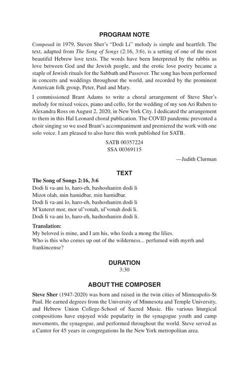 Arranger: Brant Adams