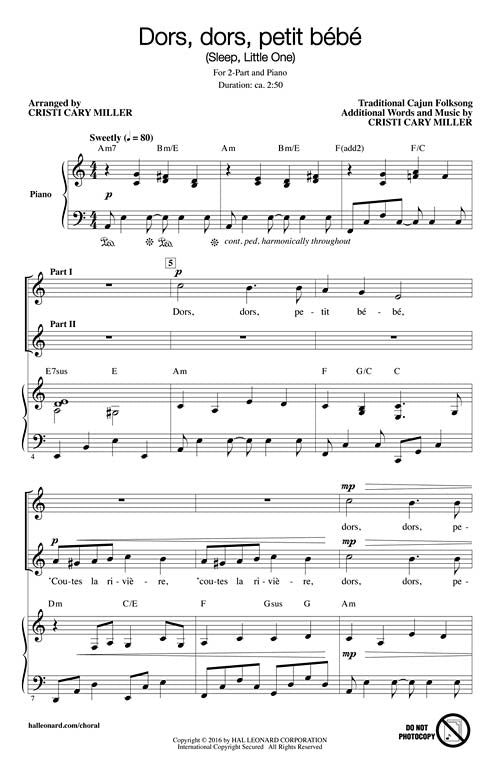 This gentle lullaby offers a wonderful opportunity to build tone quality and phrasing in a well-crafted setting for young treble singers. The easily learned Cajun French sings listen to the river while the undulating piano accompaniment evokes the sound of the river beneath the rocking vocal line.