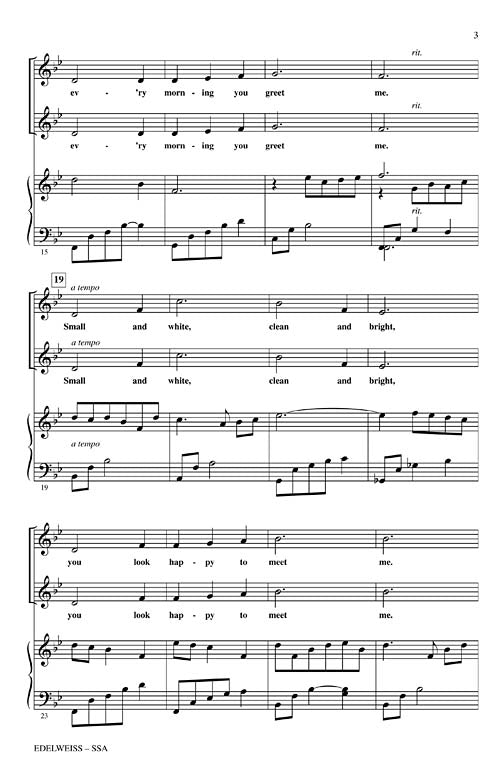This lyrical setting from The Sound of Music is placed in a sensitive yet lightly contemporary feel that unfolds from simple melody to full choral textures! Available separately: SATB, SAB, SSA, 2-Part, ShowTrax CD. Duration: ca. 4:10.