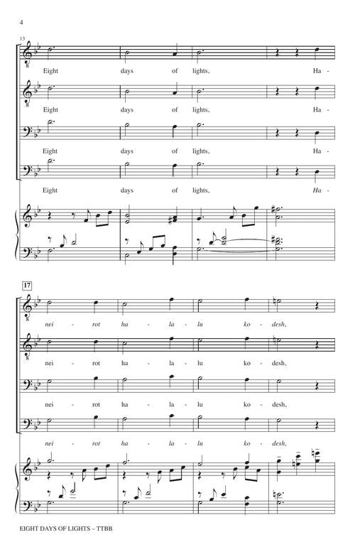 Now available for Men's choir! Chanukah is a celebration of freedom. Legend has it that when the eternal light was rekindled, there was only enough oil for one day. It miraculously lasted for eight. Here we celebrate the festival and the miracle.