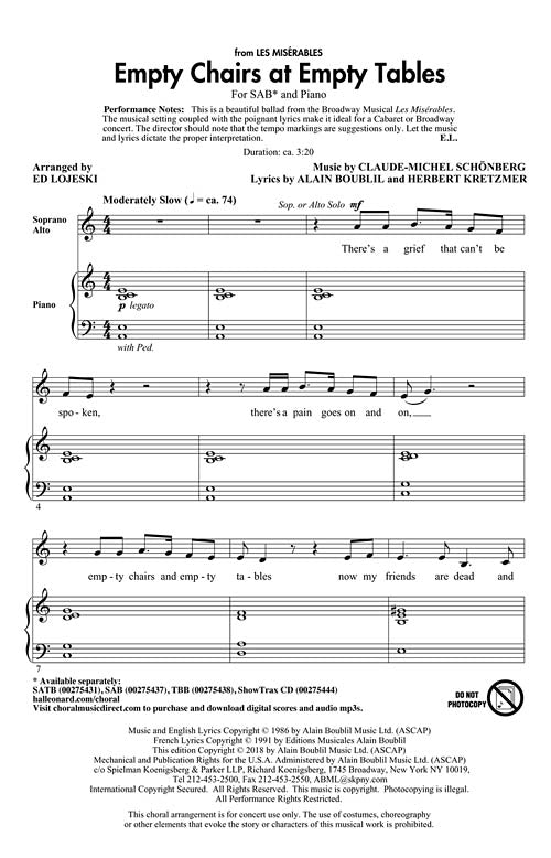 From the musical Les Miserables, this powerful ballad is full of grief but also the hope that leads us to speak truth to power. This arrangement captures the raw emotion of one who has lost friends and carries the pain and guilt of the one who lives on. Here is a song for your concert or show choir that requires their full vocal ranges along with the full emotional ranges expressed by heartfelt lyrics.