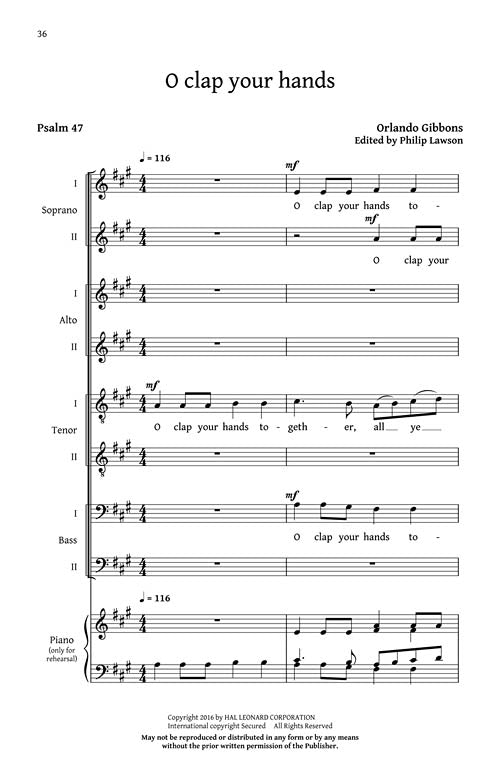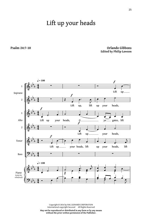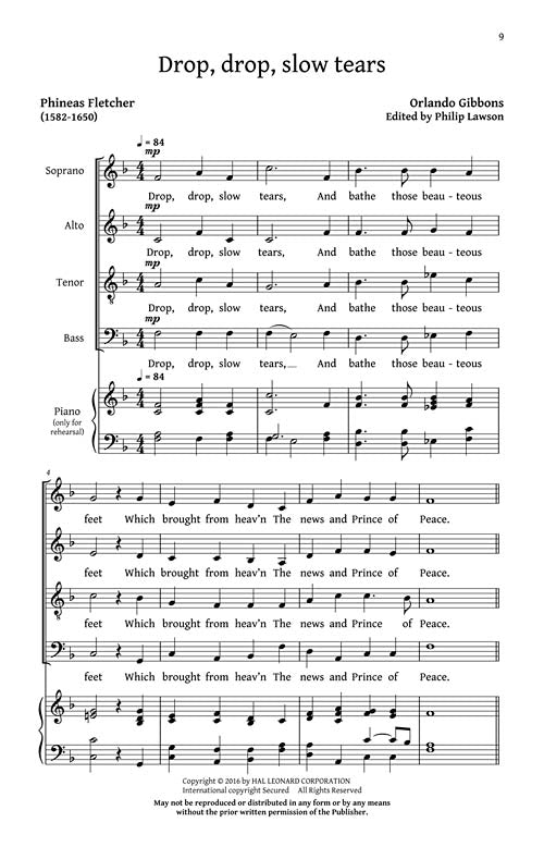 The choral music of Orlando Gibbons (1583-1625) is unusual among his Tudor contemporaries for being all in English (as far as we know), and is of the very highest quality. This collection provides an excellent value and includes five examples of the work of this rare genius: Almighty and everlasting God; Drop, drop slow tears; Hosanna to the Son of David; Lift up your heads; O Clap Your Hands.