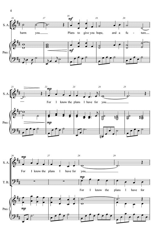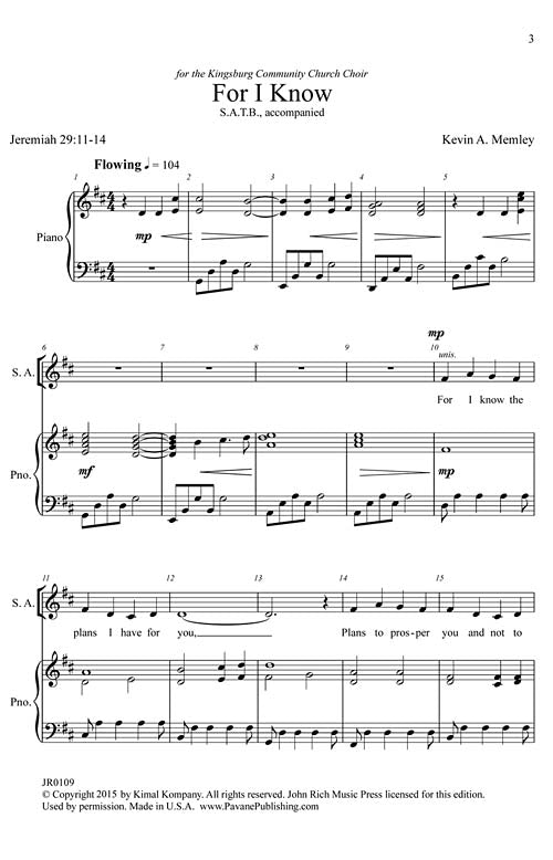 The beautiful words of Jeremiah promising us that God has plans for us has been treated graciously by Kevin Memley. Famous for his lovely melodies and satisfying developments, Kevin provides an anthem that is easily learned and long remembered. Easy to Medium.