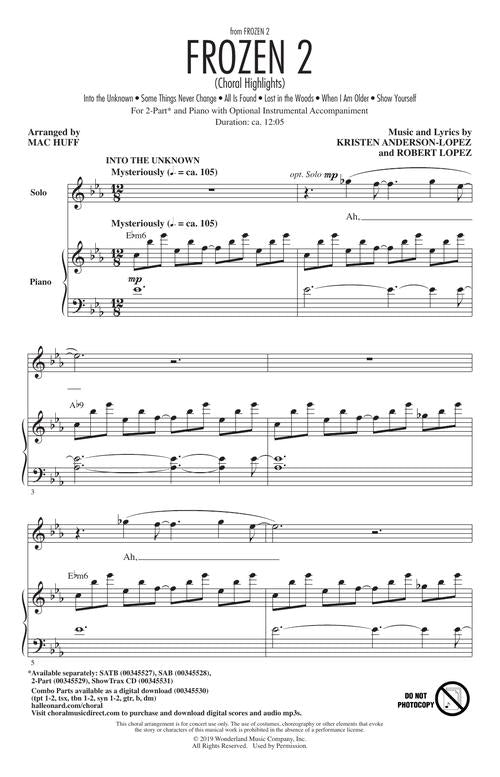 Frozen composers Kristen Anderson-Lopez and Robert Lopez were challenged to expand and deepen the themes explored through song in the 2019 Disney animated sequel, Frozen II. With a more mature, genre-blending mix of folk, rock and Broadway tunes, these six brand new songs run the gamut of emotions, further enchanting listeners with the continuing adventures of two sisters from Arendelle! Includes: All Is Found, Into the Unknown, Lost in the Woods, Show Yourself, Some Things Never Change and When I Am Older.