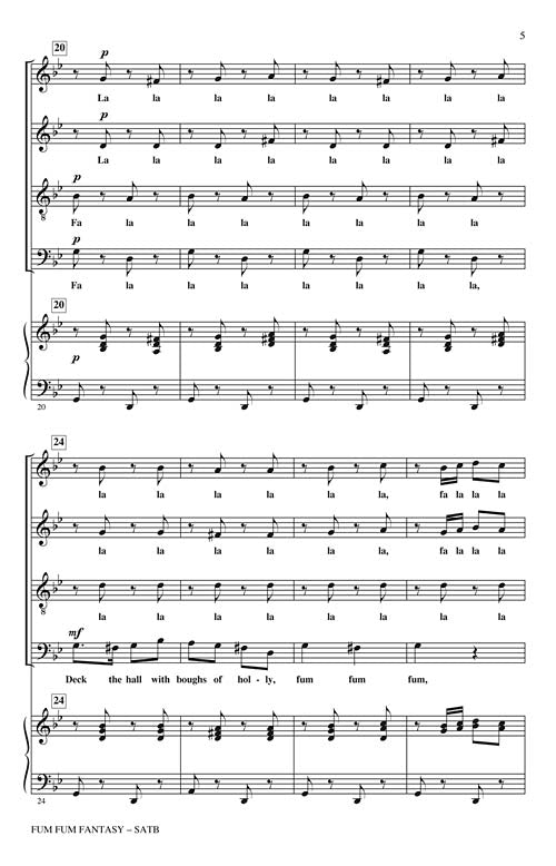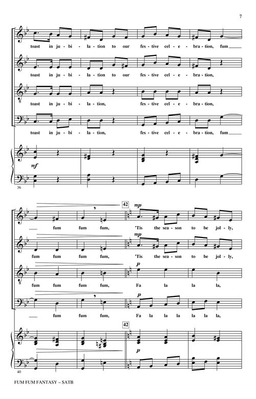 You'll raise a toast of jubilation for this holiday tour de force that combines the traditional Catalonian carol Fum Fum Fum and the Welsh carol Deck the Hall along with a few clever lyrical and musical additions. Ideal for madrigal groups, pop/jazz groups and concert choirs, your singers will welcome the challenge! With piano or opt. a cappella. Duration: ca. 1:45.