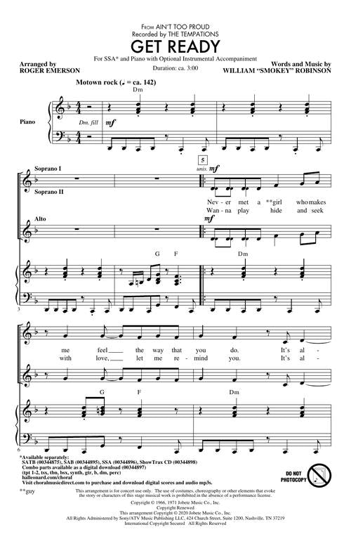 Significant for being the last Motown song written by Smokey Robinson for the Temptations, Get Ready is featured in the Broadway musical Ain't Too Proud, which chronicles the life of the award-winning group. Featuring the unmistakable Motown sound, this is a surefire crowd-pleaser!