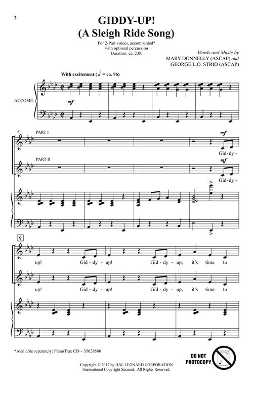 This fun and novel choral has us riding on a horse-driven sleigh, jingling all the way! Fun 2-part writing with an optional descant and percussion instruments sets the mood of a galloping trip through the snow!