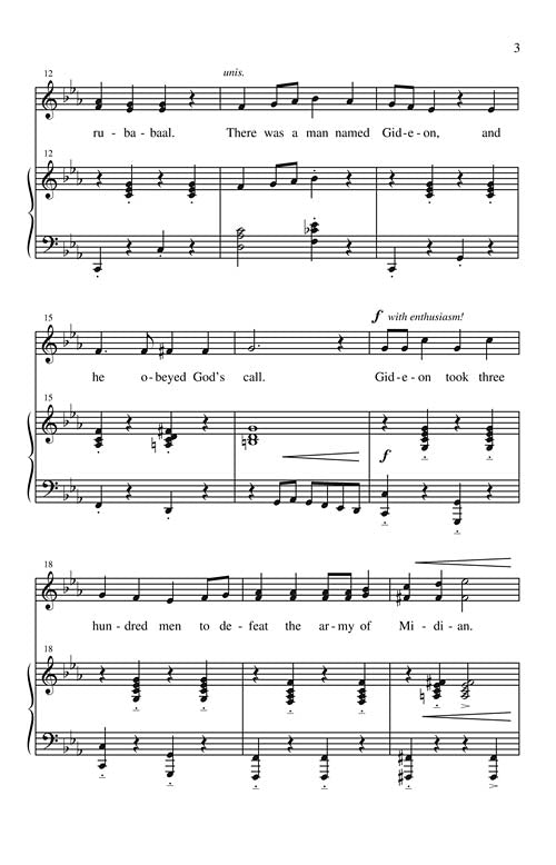 Gideon is a great addition to the Houston Children's Chorus Series. With a text from the late J. Paul Williams, the celebrated composer, Joel Raney, has provided a delightful piece that entertains and teaches the classic Bible story.