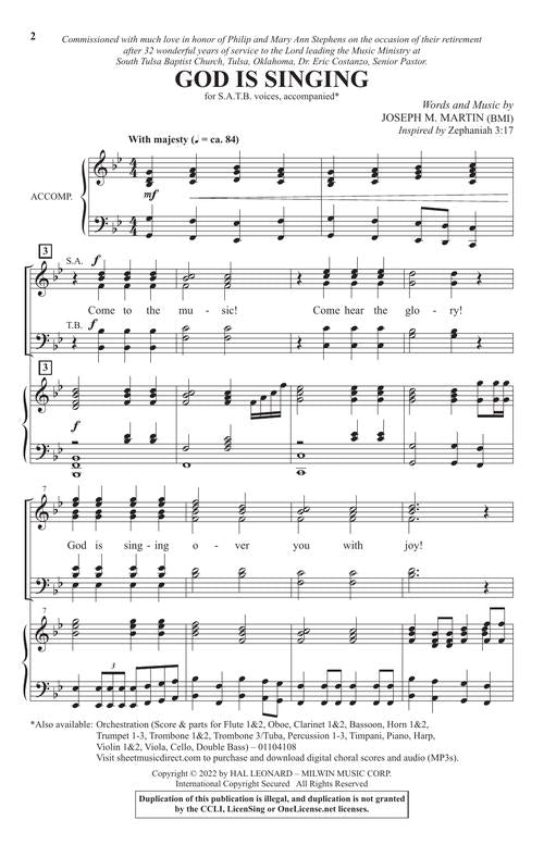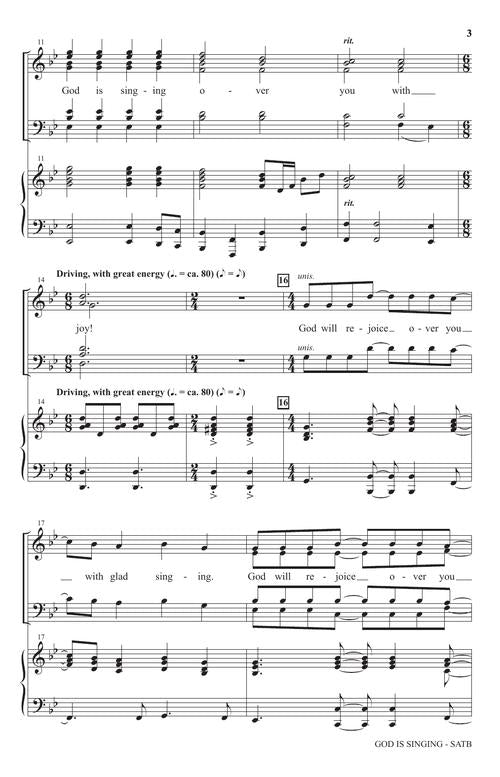 Here's an anthem full of stylistic diversity! A dramatic opening with divided choir gives way to rhythmic mixed meter, followed by a contrasting hymn-like section. A great crescendo returns to the theme, driving to the end as the choir proclaims, Our God is singing over you. Score and Parts (fl 1-2, ob, cl 1-2, bn, hn 1-2, tpt 1-3, tbn 1-2, tbn3/tba, perc 1-3, tmp, pno, hp, vn 1-2, va, vc, db) available as a digital download.
