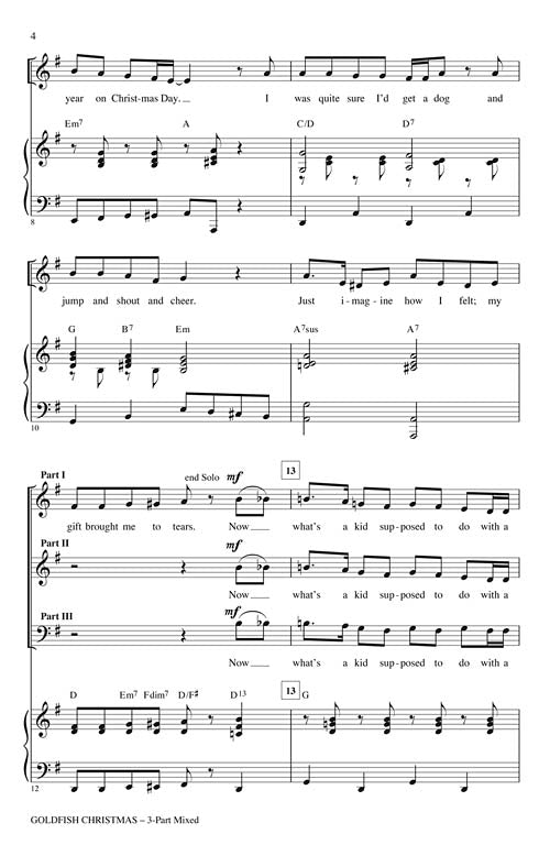 What child has not wanted a puppy for Christmas? This original novelty song is a sweet and funny look at what can happen when we don't get exactly what we want. Written in a theatrical style, this tune lends itself to riser choreography, leading to plenty of smiles all around! Available separately: 3-Part Mixed, 2-Part, VoiceTrax CD. Duration: ca. 2:40.