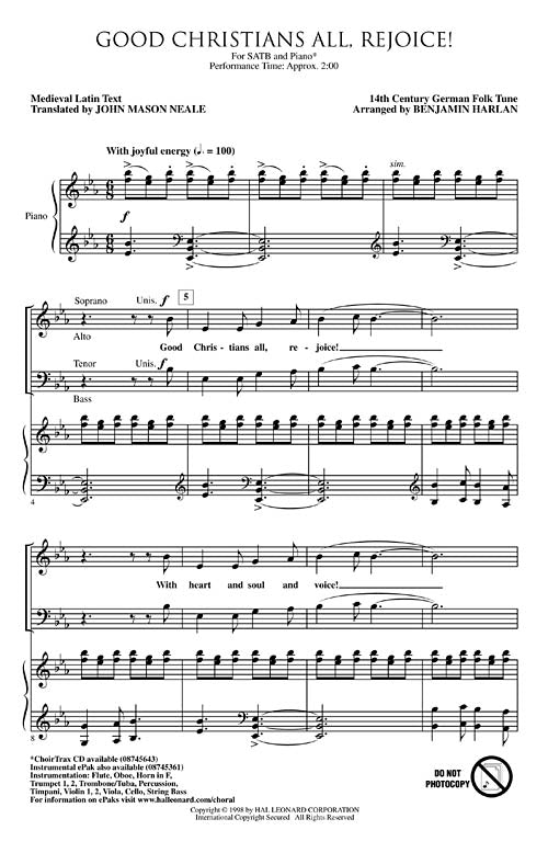 Another absolute winner from Benjamin Harlan! This big and dramatic piece that can serve as opener or closer for any special Christmas service.Available separately: SATB, ePak(O) and ChoirTrax CD. Performance Time: Approx. 2:00.