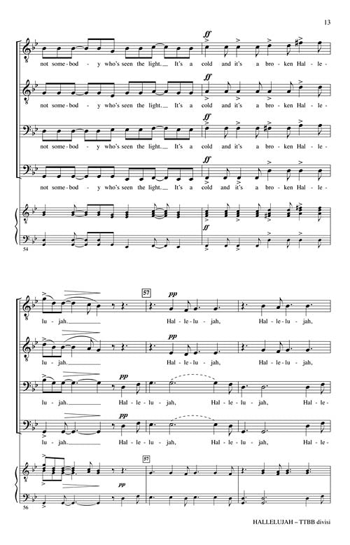 Leonard Cohen's classic song has been covered hundreds of times. This setting for a cappella voices is striking for its range of texture, dynamic contrast and sheer harmonic beauty.