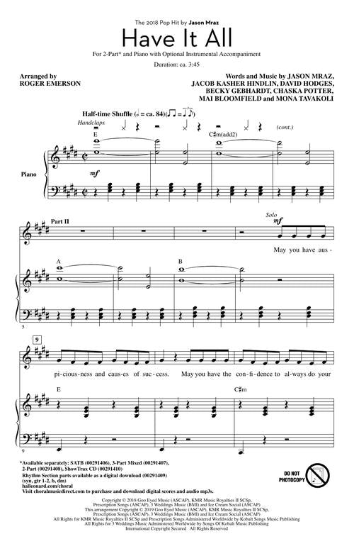 This Jason Mraz song provides a hopeful message, a blessing meant to be paid forward and shared. The happy up-beat style along with positive lyrics make this a wonderful song for a concert or show.