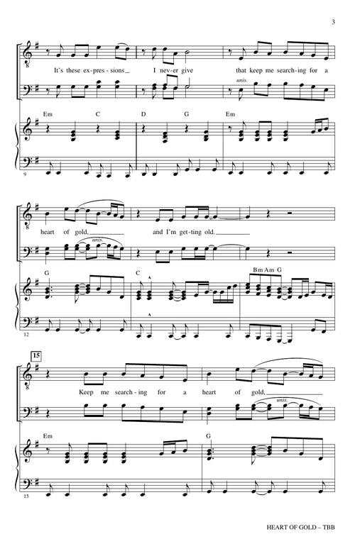 Legendary singer songwriter Neil Young has had only one number one hit and this is it. Thoughtful lyrics, a singable melody and incredible popularity make this a perfect selection for your men's choir retro pop selection.