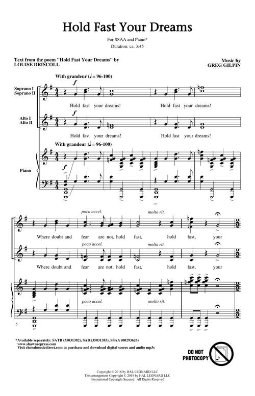 Now available in a stunning SSAA voicing, selected lines from Louise Driscoll's poem, set here in a vibrant and grand setting, will become a signature piece for your women's and mixed choirs. Beginning with vocal fanfare, long melodic and harmonic lines then sing above a rhythmic and driving piano accompaniment arriving to a final, celebratory finish. A must for inspirational programming.