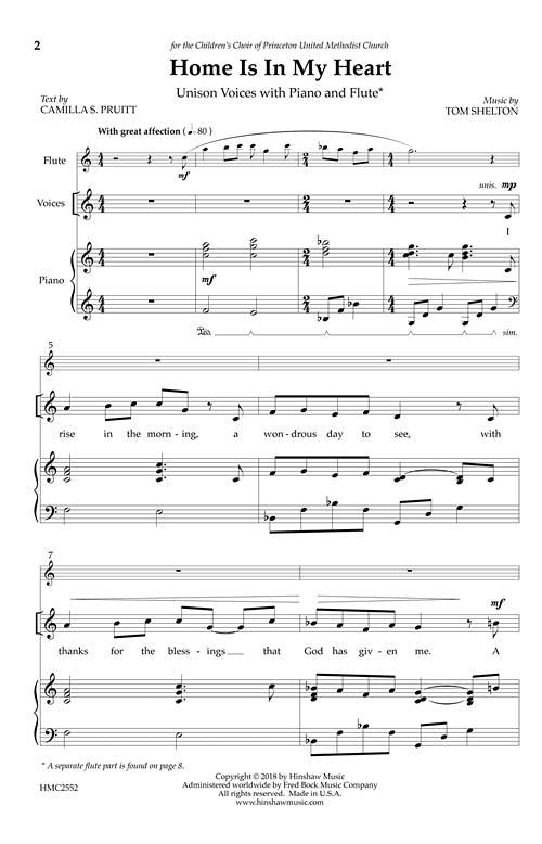 The brother-sister/composer-lyricist team of Tom Shelton and Camilla Shelton Pruitt have again given us a gem for unison elementary voices. Accompanied by flute and piano, try it for the Festival of the Christian Home, Mother's Day, Father's Day, or any time of thanks and gratitude.