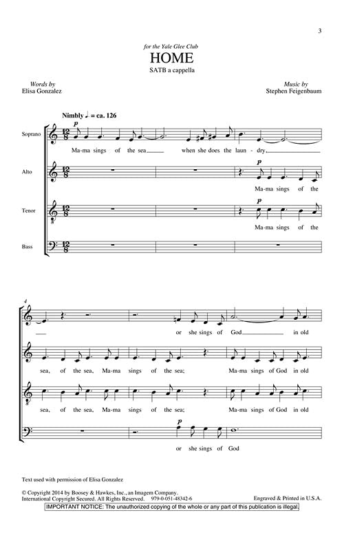 Written for Jeffrey Douma and the Yale Glee Club, Stephen Feigenbaum has created a piece that is at the same time classically contemporary and jazzy, light hearted and sad, insightful and fully transparent. Duration: ca. 5 minutes.