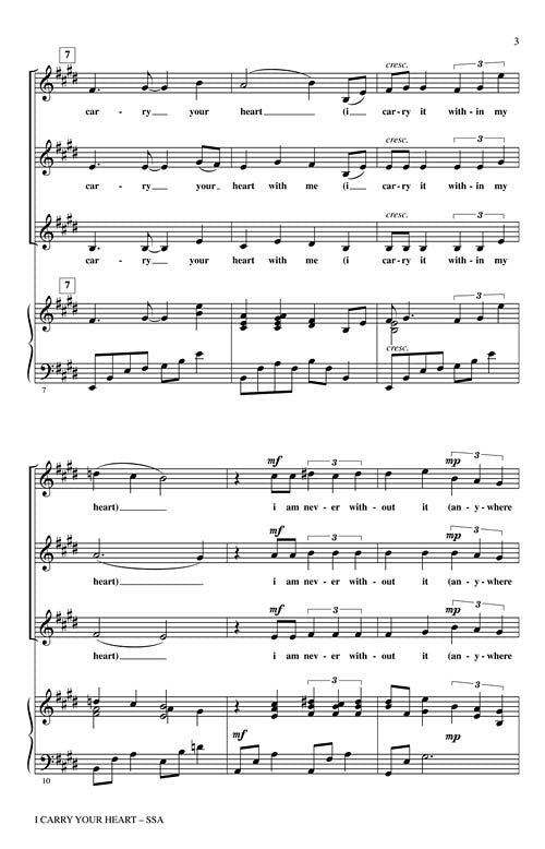 This beautiful setting of an e.e. cummings text is highlighted by its serenity and expressiveness. Ideal for women's ensembles, this gem will sparkle in performance! Duration: ca. 4:15.