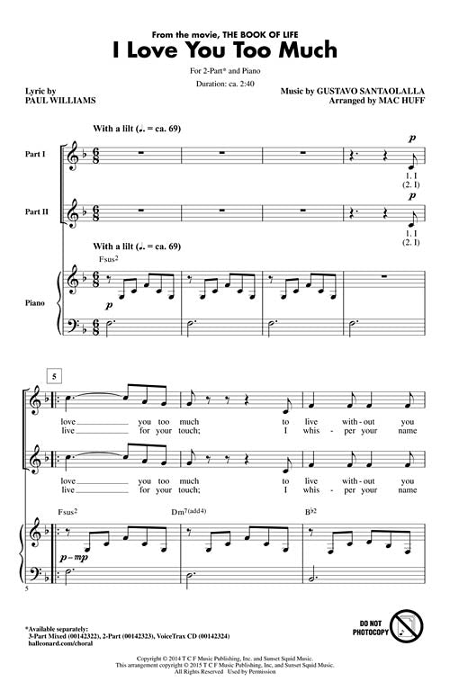 The simple, uncomplicated beauty of this Spanish-flavored song offers younger singers a chance to develop a sense a phrasing and tone. From the animated film The Book of Life, this sweet song describes the feelings of the two main characters, Manolo and Maria.