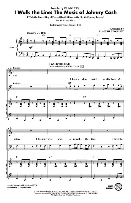 This 5-minute medley of songs made famous by the incomparable Johnny Cash will make a great addition to many programs. Includes: I Walk the Line, (Ghost) Riders in the Sky (A Cowboy Legend), Ring of Fire. Performance Time: Approx. 4:35.Available separately: SATB, SAB, TTB and ShowTrax CD.
