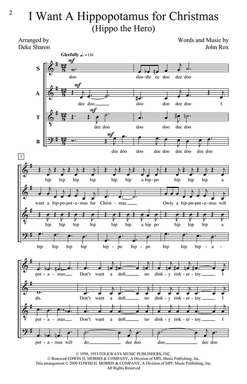 I Want A Hippopotamus For Christmas Satb A Cappella Arranger Dek