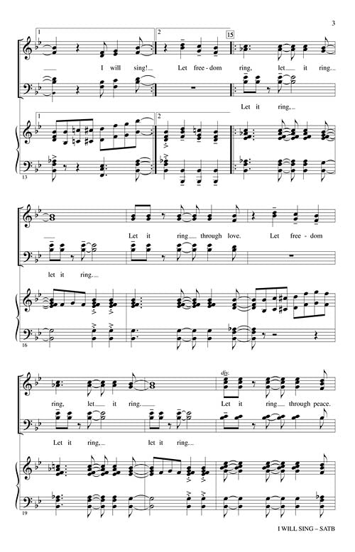 Sing of the joy, the peace, the hope and the love and let it ring! This original concert work in the gospel style will showcase your choir at their finest. Ideal for community events, worship and concerts for mixed choirs from high school through adult!