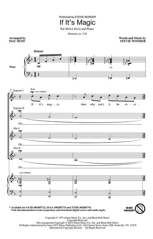 This beautiful classic from Stevie Wonder is here set in our Concert Pop Series. Full choral writing, flexibility in tempo, wonderful pop stylings and a concert climax make this another great addition to the concert pop repertoire.
