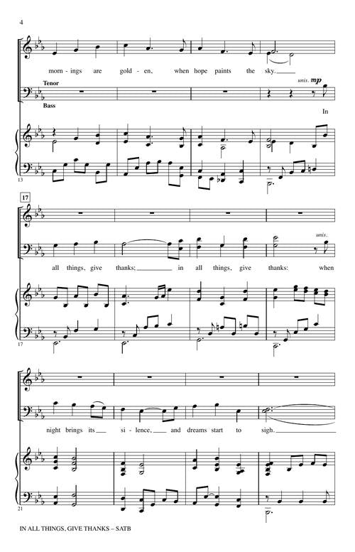 An offering of gratitude for the seasons of life, this bittersweet anthem reminds us to live abundantly with a heart of praise. This sacred song provides many moments for expressive singing and beautiful harmonies.