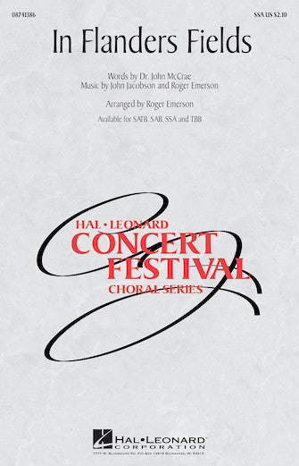 Now available in a 2-Part voicing, this setting of the famous World War I era poem by Dr. John McCrae is stunning in its simplicity and emotional impact. Perform it for Memorial Day and veteran's ceremonies or at any concert occasion. Also now available separately: String parts and ShowTrax CD. Available separately: SATB, SAB, SSA, TBB, 2-Part, ShowTrax CD. String parts available digitally (vn 1, vn 2, va, vc). Duration: ca. 2:30.