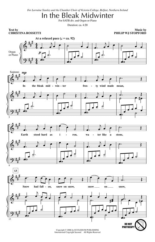 Echoing the setting of Gustav Holst, here is a new tune to some very familiar words with a new melody and a poignant, beautiful harmonization. May be performed with either piano or organ. Duration: ca. 4:20.