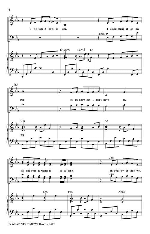 Exquisite lyrics and flowing vocal lines combine in this Stephen Schwartz ballad taken from one of his most performed musicals, Children of Eden. There are times I've been afraid ... Then I feel your hand in mine And there's courage in my heart.Available separately: SATB, SSAA, TTBB and ShowTrax CD. Performance Time: Approx. 3:15.