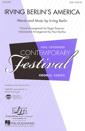 With a musical career spanning a century, the 20th century was Irving Berlin's own and his music was America's music. This spectacular choir, band and optional string medley of some of Irving Berlin's classic songs offers a variety of entertaining performance options. Includes: Alexander's Ragtime Band, There's No Business Like Show Business, Puttin' on the Ritz, Always, Blue Skies, God Bless America. Available: SATB, SAB, 2-Part, Concert Band (Gr. 3), String Pak, ShowTrax CD. Performance Time: Approx. 7:00.