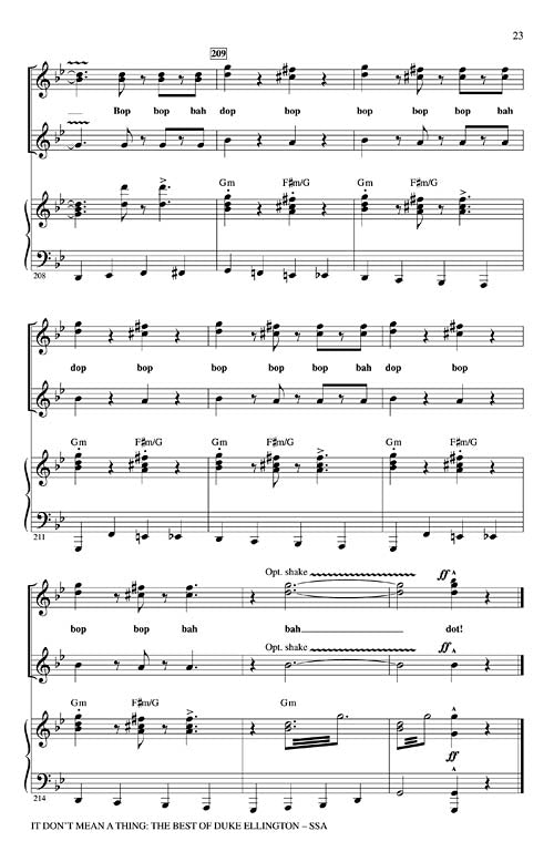 Pay tribute to the music of Duke Ellington in this hot 7-minute medley. Includes four of his greatest hits: Mood Indigo, Satin Doll, Take the A Train and It Don't Mean A Thing (If It Ain't Got That Swing).Available separately: SATB, SAB, SSA, Instrumental ePak (parts for Trumpet I & II, Tenor Sax, Trombone, Guitar, Bass and Drums) and ShowTrax CD.