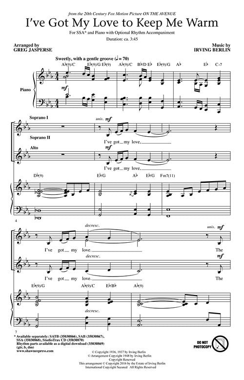 Irving Berlin's classic is presented here in a gentle, sweet groove with simple jazz vocals and soft rhythm. Beginning with an easy vocal riff, the familiar melody is accompanied by refreshed chords that lightly surprise and offer a new interpretation to this romantic, winter song.