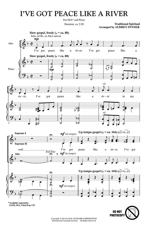 Solid vocal harmonies over a rhythmic gospel piano will bring spirit and joy to your concert and church programming! Accessible and well-crafted! Available separately: SATB, SSA, ChoirTrax CD.
