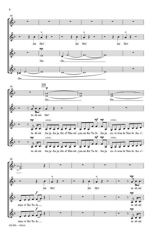 From the film Slumdog Millionaire here is a wonderful fusion of Indian rhythms and scales with American pop styles and instrumentation. Excellent program notes offer guidance for the style, there is an easy to understand pronunciation guide to help with the Hindi language and a separate percussion score.