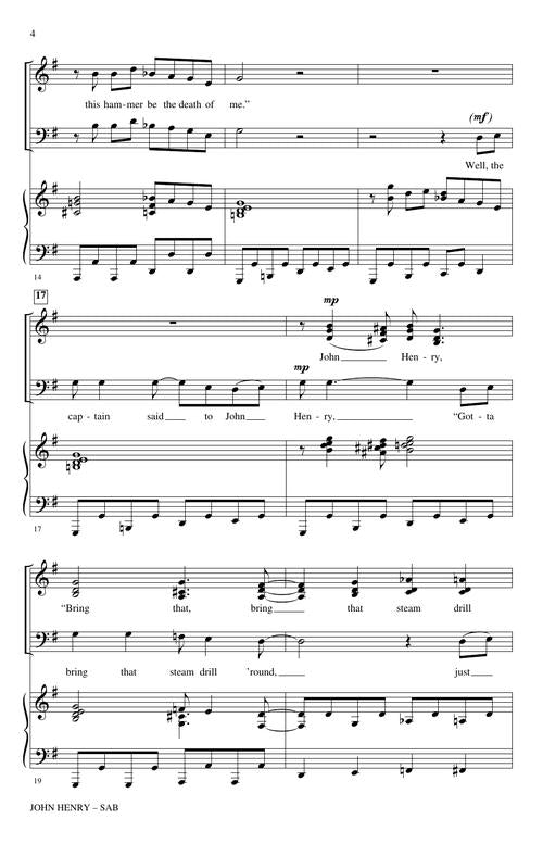 Set in multiple voicings, this traditional railroad work song tells the dramatic story of John Henry who died with his hammer in his hand! A driving piano accompaniment keeps this work on track to be a powerful performance your singers will love.