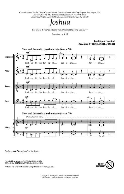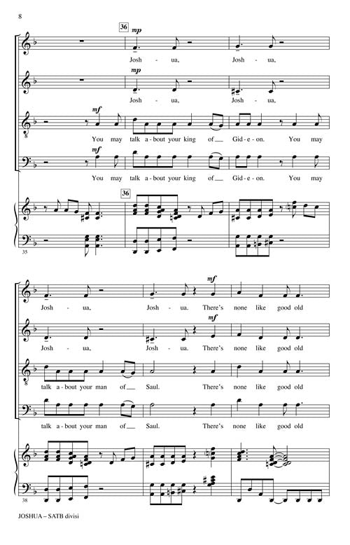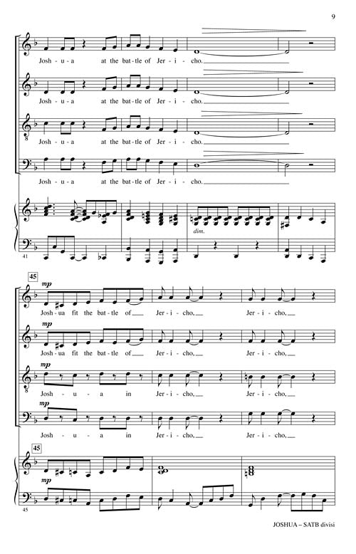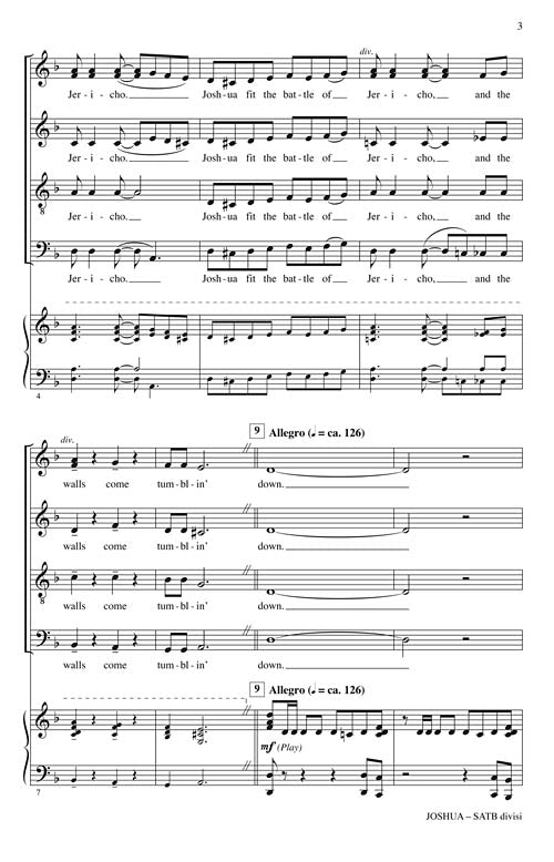 Opening with a slow, unaccompanied statement of the refrain, this contemporary setting of the traditional spiritual then unfolds into a dramatic layering thematic treatment that is tremendously exciting. Includes optional congas and electric bass.