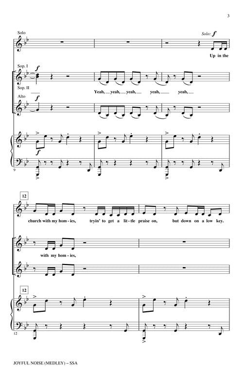 Dolly Parton and Queen Latifah take their small town choir to new heights in Joyful Noise and this funk-fueled medley of songs will lift up your choir, too! These three songs from the film will show off your gospel style and your singers and audience will love the positive message! Five minutes in length, songs include: Forever; Yeah!; Signed, Sealed, Delivered Im Yours.
