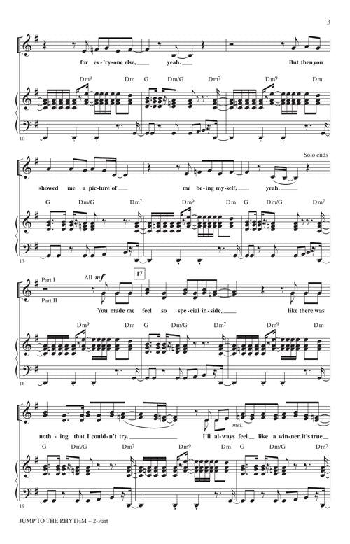 Feel the power of the music and the rhythm! Over eight million people watched the Disney Channel movie Jump In and this energetic single shows you why. Available separately: 3-Part Mixed, 2-Part, ShowTrax CD. Duration: ca. 3:45.